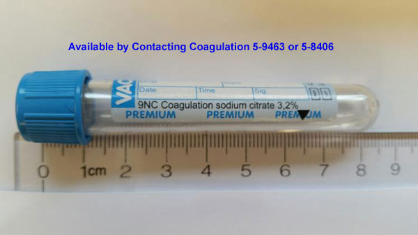 If the patient has a known hematocrit >55%, please contact the coagulation lab for an adjusted collection tube before drawing the blood.